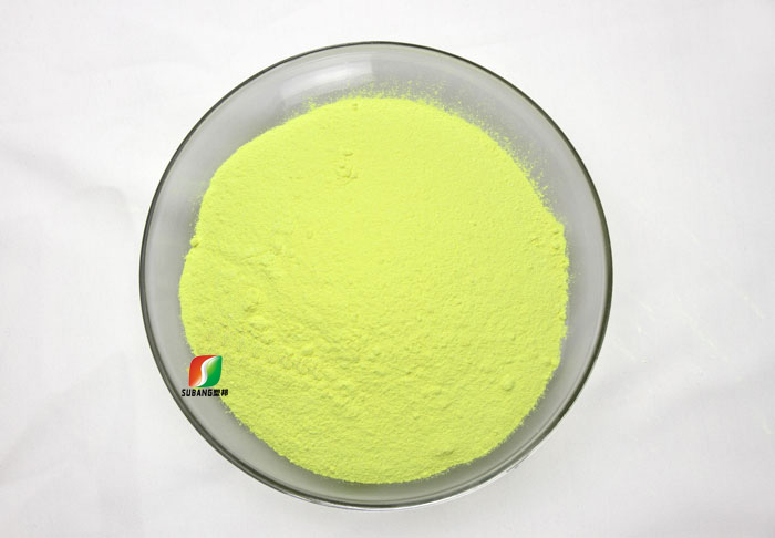本品使用溫度常溫至280℃以內(nèi),可溶于80倍的軟水中,耐酸堿程度為pH=6~11,它可與陰離子表面活性劑或染料、非離子表面活性劑、雙氧水同浴使用。在同等用量的情況下白度比VBL、DMS高,而水溶性能與VBL和DMS相差無幾。與CBS-X相比,水溶性能稍差,但CBS-X可以隨水帶走,涂料干了容易遷移和泛黃,本品解決了在水性涂料、水性漆里熒光增白劑的耐溫性、耐候性、耐黃變、抗遷移性。